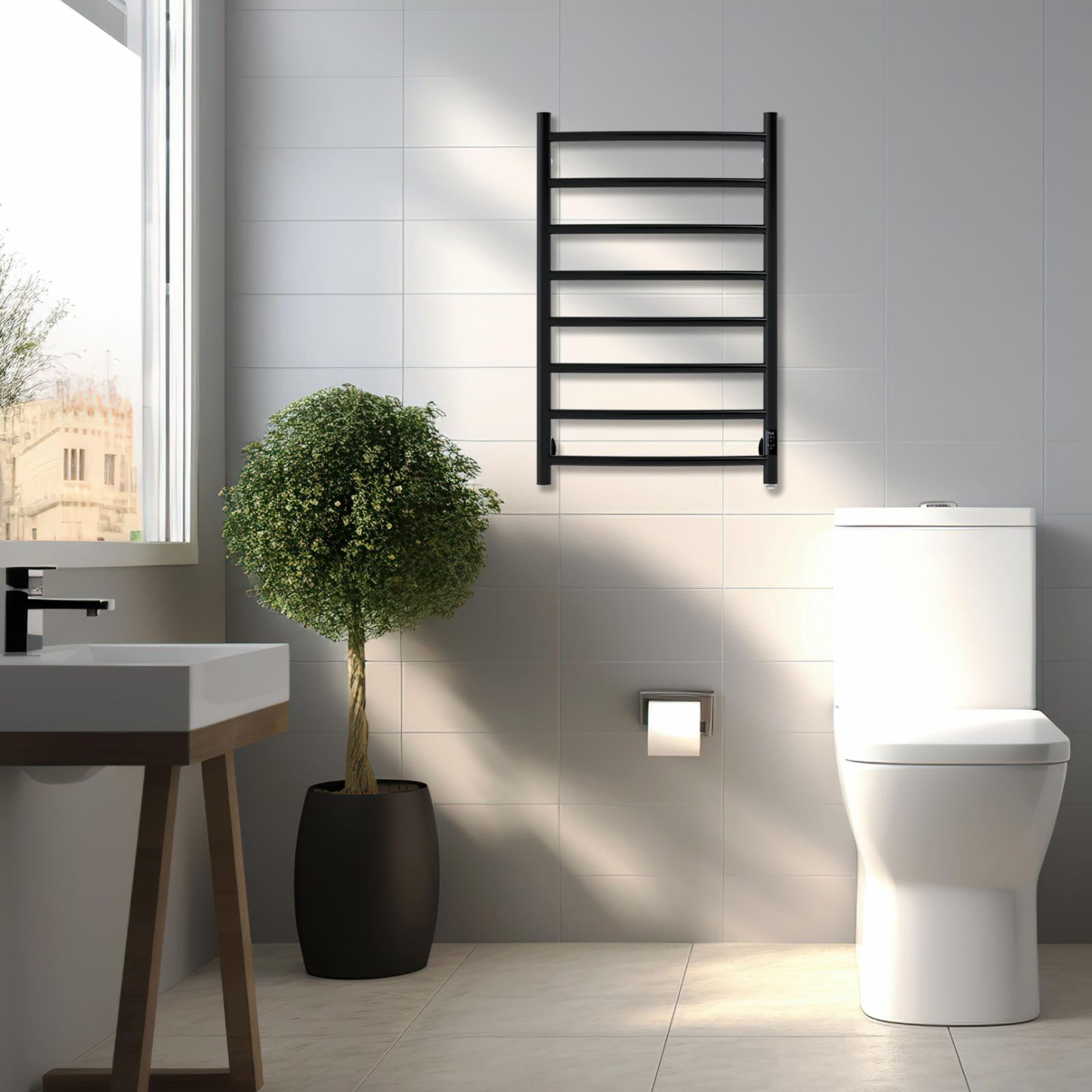 Praktilise ja lihtsa vormiga redeltüüpi käterätikuivati. Matt must, 80W